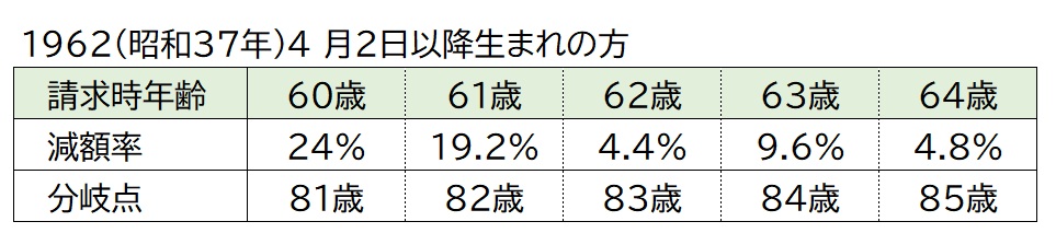 1962(昭和37)年4月2日以降生まれの人の24%減額