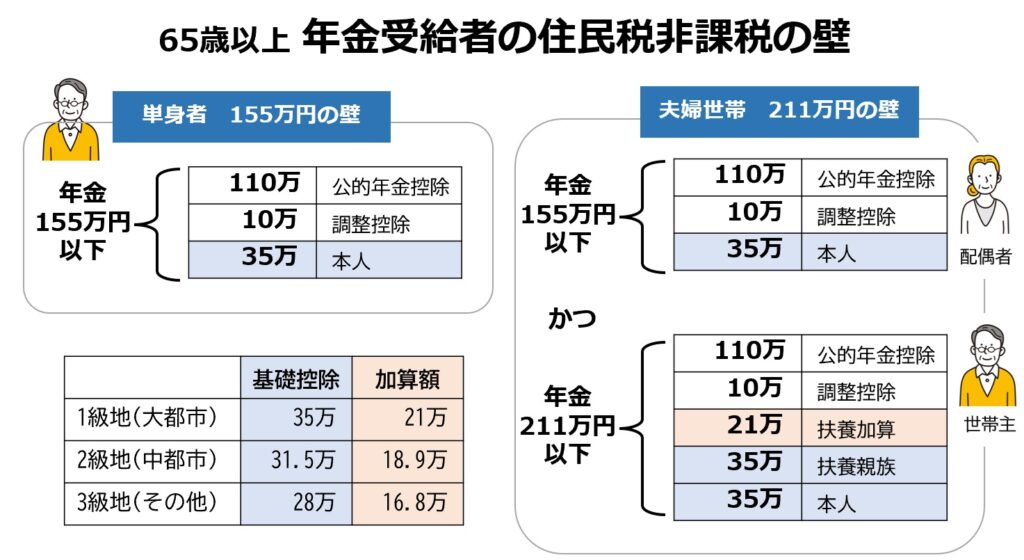 年金収入のみの場合、この金額に収まっていれば住民税非課税世帯となります。