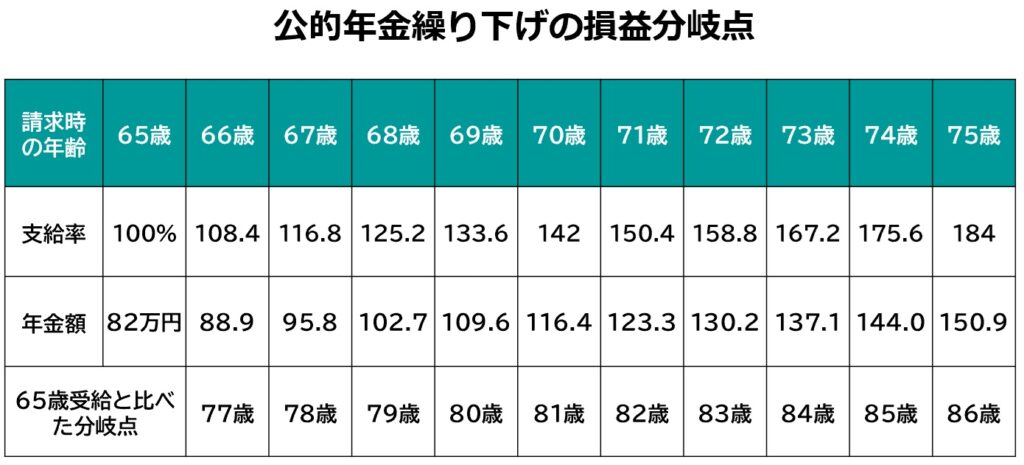 繰下げで増やすのはいいのですが、65歳からもらった人より受取総額が増える分岐点より長生きしないと、損してしまいます。