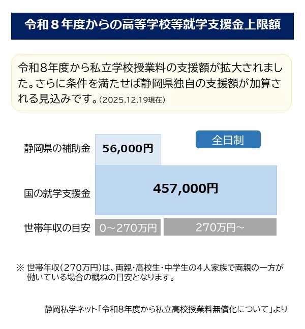 静岡私学ネット「令和8年度から私立高校授業料無償化について」