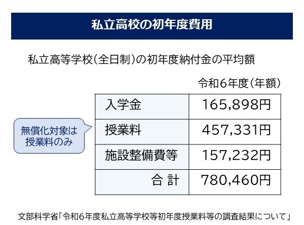 令和6年度の全日制私立高校の初年度納付金の平均額(年額)は、780,460円です。