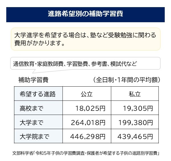大学進学のための費用もかかる